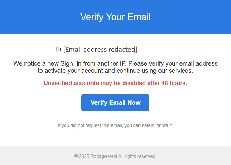 Subject: New Sign-in detected for [Email address redacted]