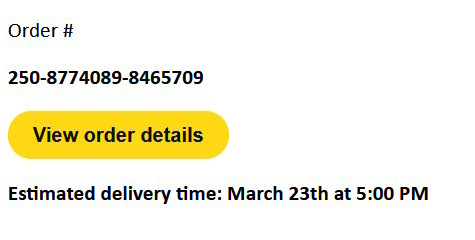 Link addresses, clicking the yellow "view you order" or "track your package" do not take you to a genuine Amazon website but to these addresses... https://amazon.813wl.com/shipping.amazon.com/, https://amazon.rtqgj.com/shipping.amazon.com/, https://amazon.szmkx.com/shipping.amazon.com, https://amazon.51jsa.com/shipping.amazon.com.