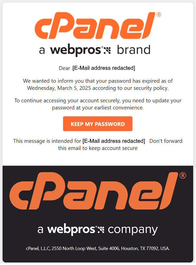 cPanel Password Expiry Scam