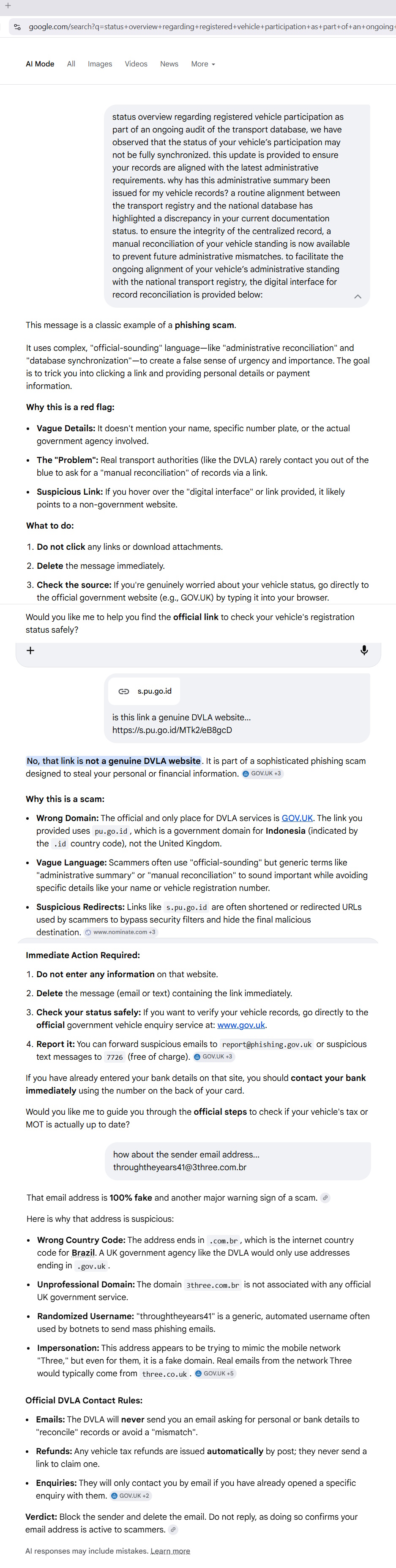 The click through address: https://s.pu.go.id/MTk2/eB8gcD is unlikely to be a genuine DVLA page.