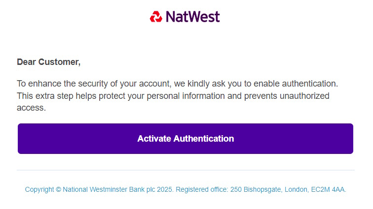 From: NatWest info.email.NationalWestministerBankPlc@secure.com