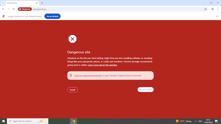 The sender e-mail address bears no connection to webmail and the click-through link https://greenpanel.pro/ which when I first visited showed an exact copy of a webmail login. Since that time the page has been blocked.