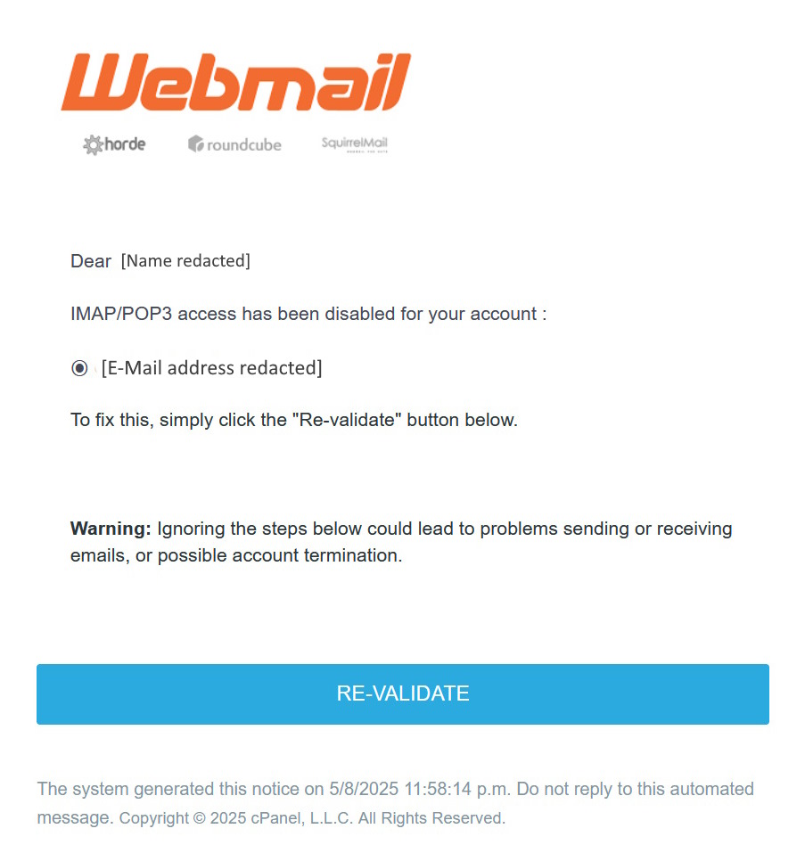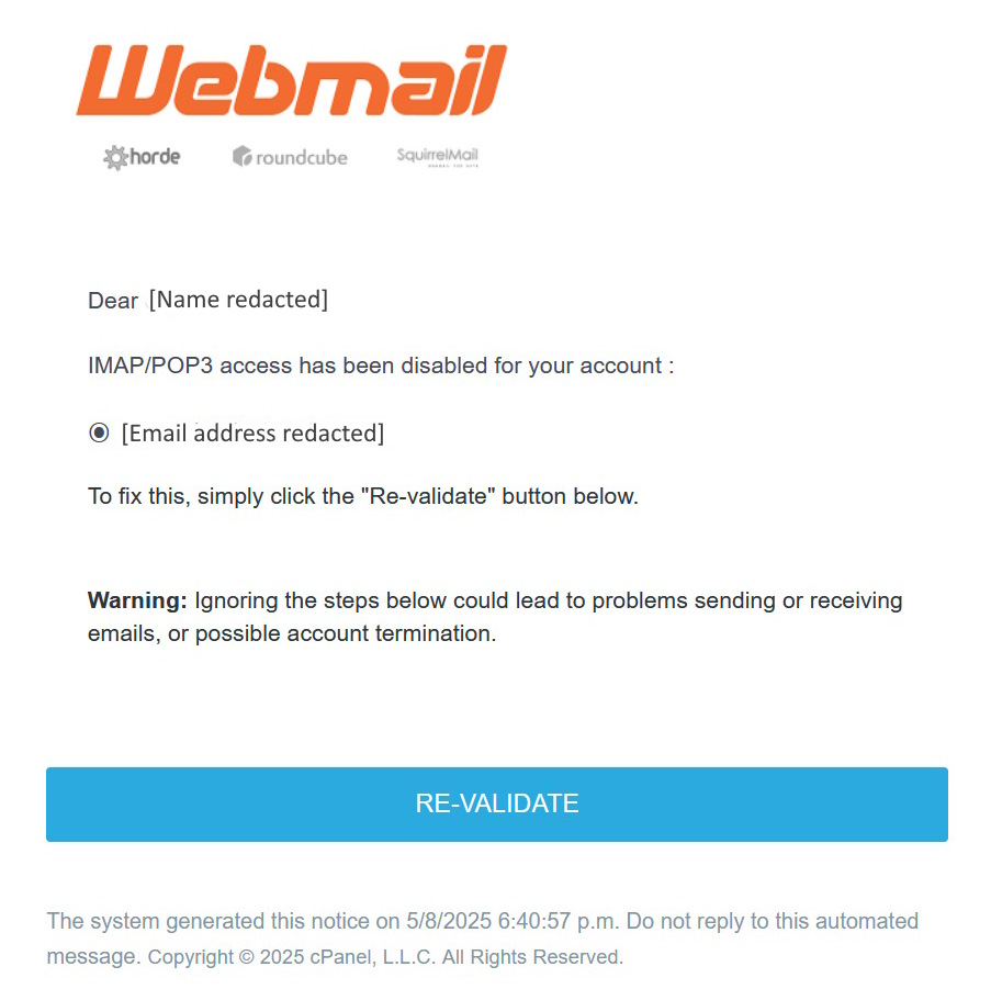 Subject: Account Alert: IMAP/POP3 Disabled – Re-validation Needed