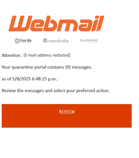 Subject: Notice: 9 Emails Quarantined – Review Needed