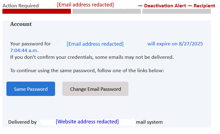 A deactivation alert for your email account, no time to lose confirm your credentials now, but this is a phishing attempt to gain access to your account.