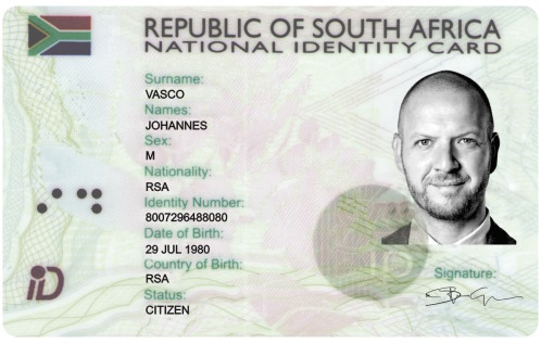 Johannes Vasco promises me a copy of his driving licence to be attached so I will know what he looks like. The document supplied was actually a fake RSA Identity card