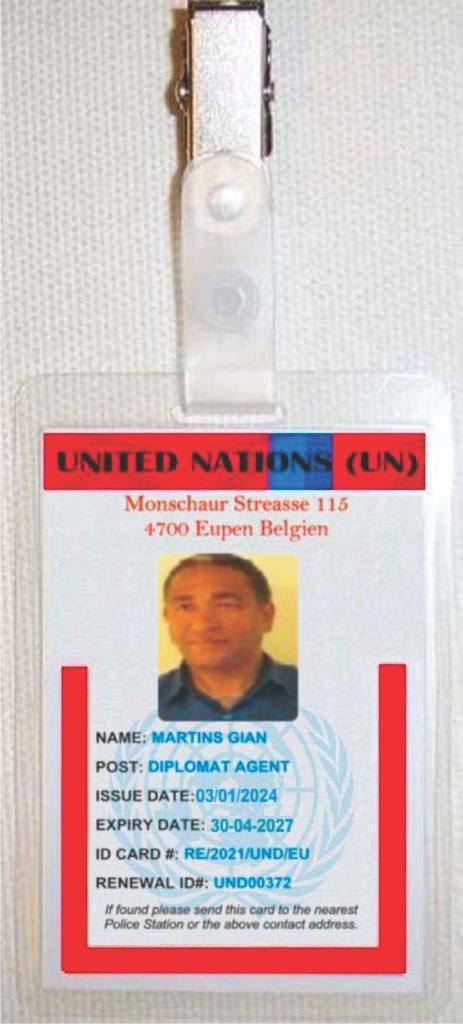 So apparently Gian Martins is in the UN headquarters in the UNITED KINGDOM (I was not aware we had such headquarters), the box is at Edinburgh airport and yet I am given a US telephone number to contact for further details. I did do a reverse search for the telephone number and it indicated the number was registered to a Chandra Denis Valdez in Florida.