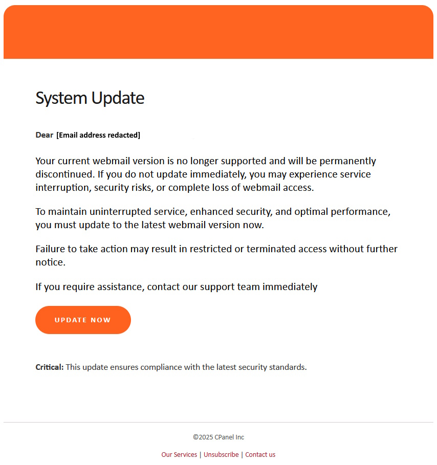 Webmail Update Required Phishing Scam